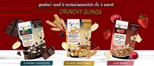 เราเป็นผู้ผลิตและจัดจำหน่ายธัญพืชต่างๆ ภายใต้แบรนด์เดลลี่ มี ( Daily Me ) ผลิตและจัดจำหน่ายซีเรียลธัญพืชอบกรอบกราโนล่ารสชาติต่างๆ เดลี่ เบเกอรี่ ( Daily Bakery ) จัดจำหน่าย วัตถุดิบเบเกอรี่ ถั่ว ผลไม้อบแห้ง และธัญพืชต่างๆ